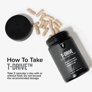 How Do I take T-Drive™? We recommend 3 capsules a day with or without food, whichever you prefer. But if your stomach gets easily irritated, you should take it with food. -