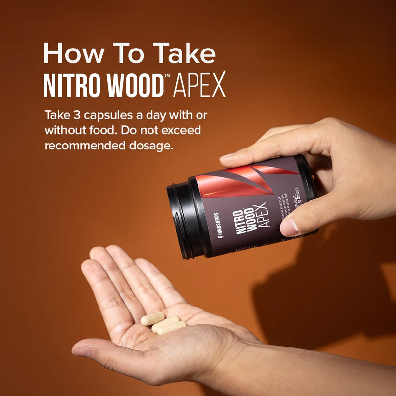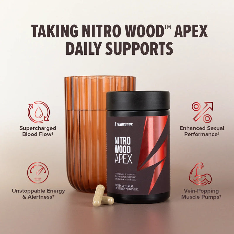 Nitro Wood™ Apex is for high-achieving men looking to unlock peak performance in every aspect of life—thriving in the gym, their relationship and at work. Whether it’s you’re looking for support in enhancing stamina, sharpening focus or improving sexual confidence, this formula is designed to help you perform at your best.